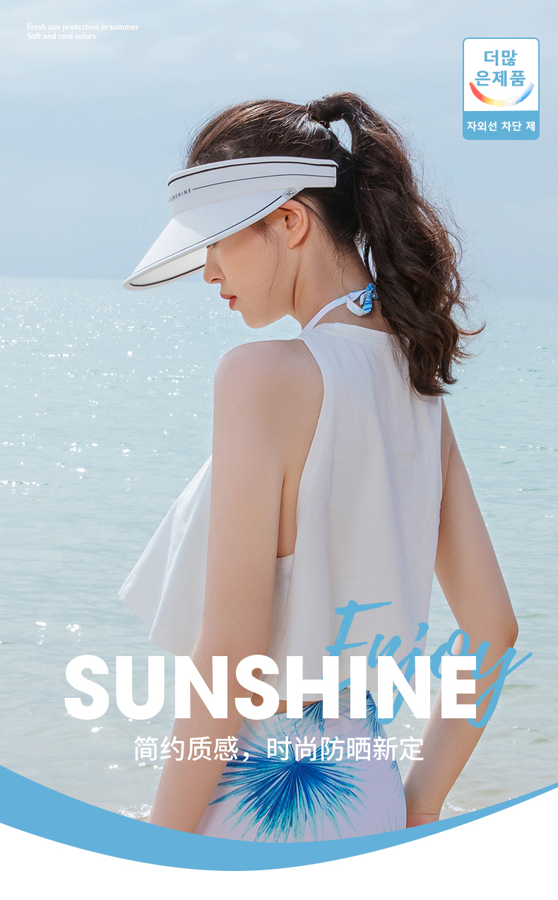 VVC防晒帽女防紫外线遮脸运动空顶太阳帽子遮阳帽 简约白