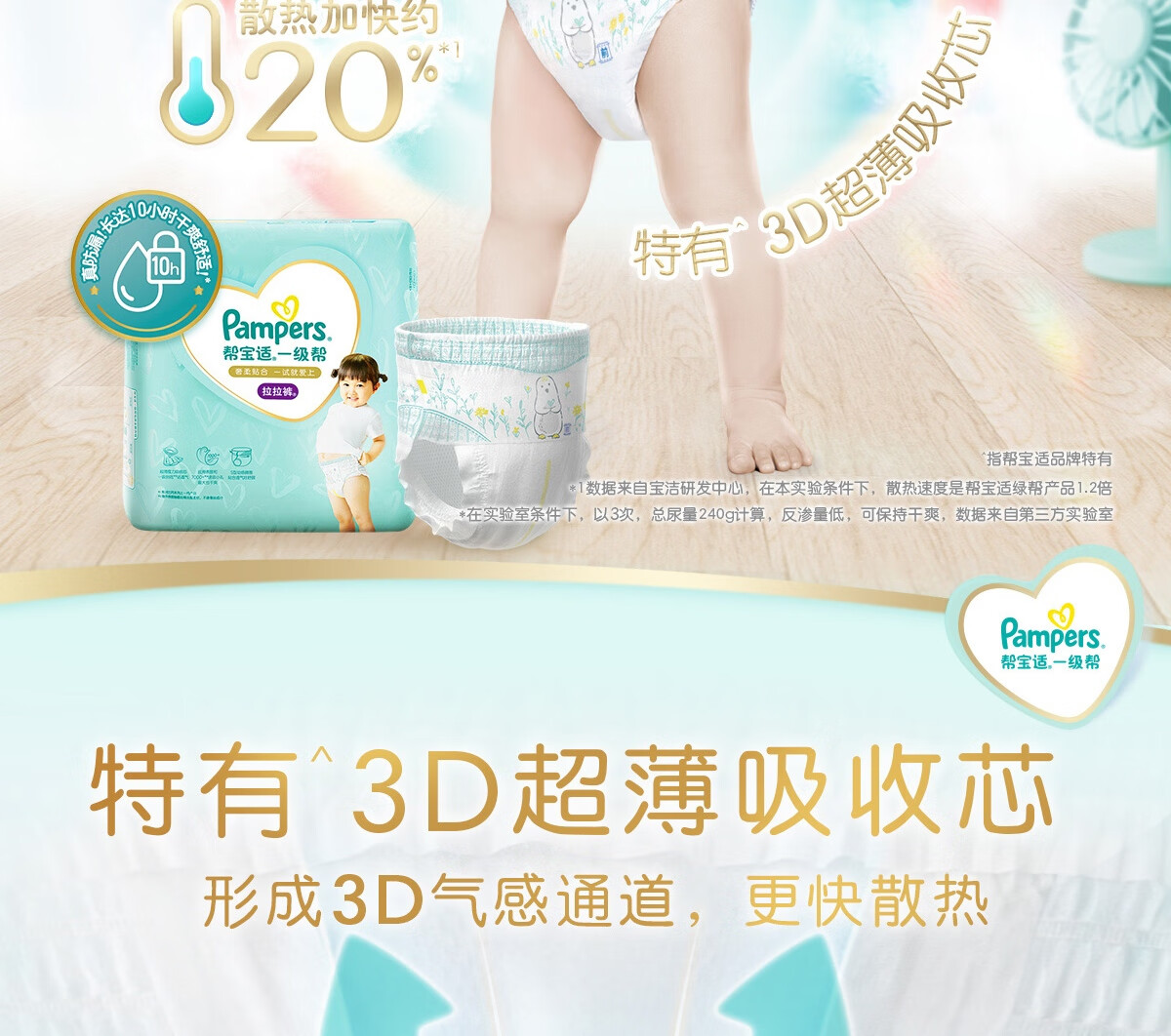 商品名称:帮宝适一级帮拉拉裤®XL64片(12-17kg)尿不湿尿裤成长裤超薄透气 散热