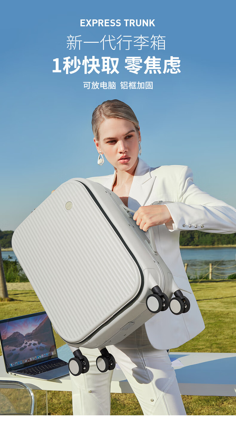 商品名称:米熙前开盖铝框箱包拉杆箱子密码箱行李箱大容量旅行箱男20英寸烟白70