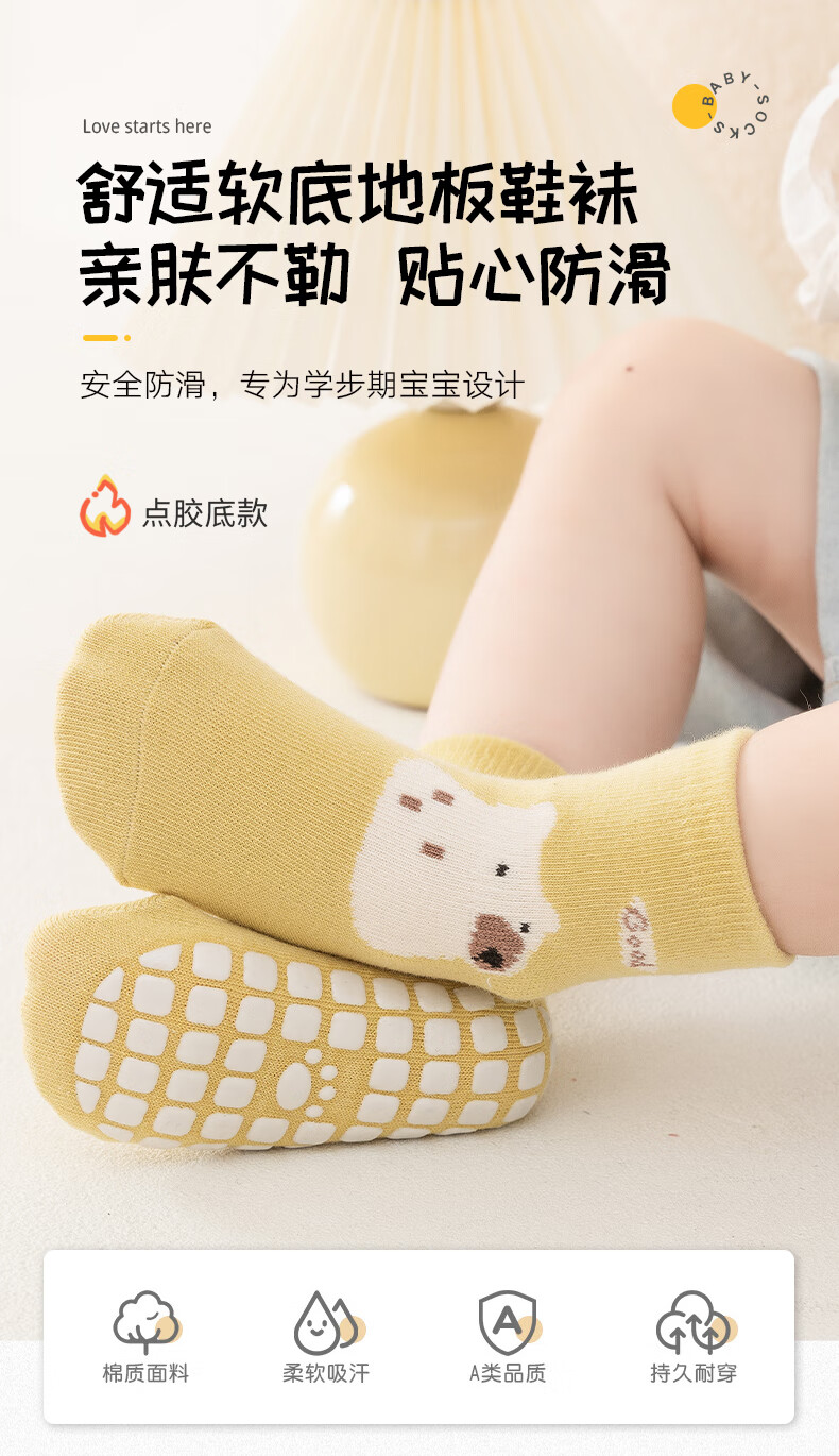 商品名称:童颜 婴儿袜子室内学步袜宝宝地板袜透气防滑底隔凉早教袜套 1-3岁