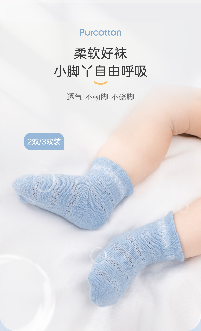 商品名称:全棉时代婴儿袜子薄款男女童棉袜透气 蔚蓝+白+天蓝(3双装 中筒袜)7.5cm